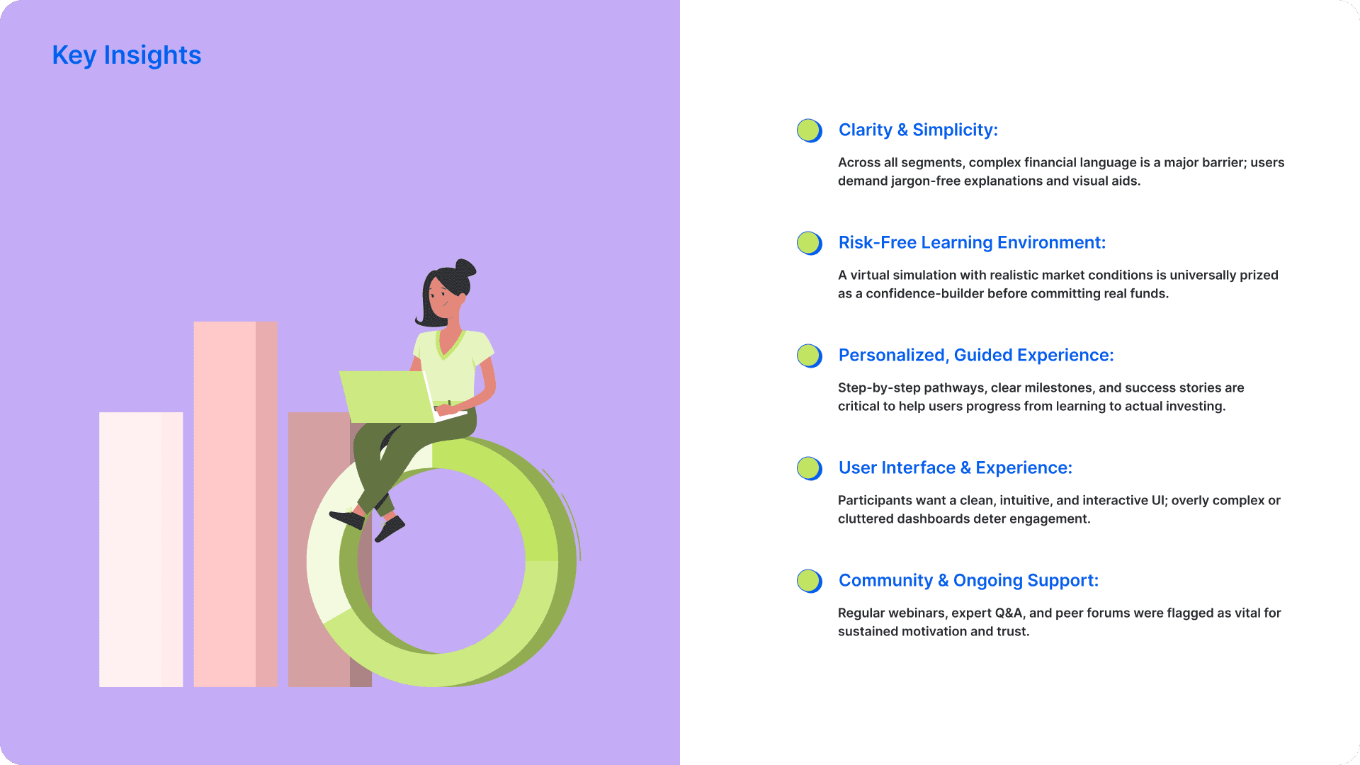 ✦ Practice Over Theory: A sandbox trading desk gave users the confidence to “learn by doing.”
